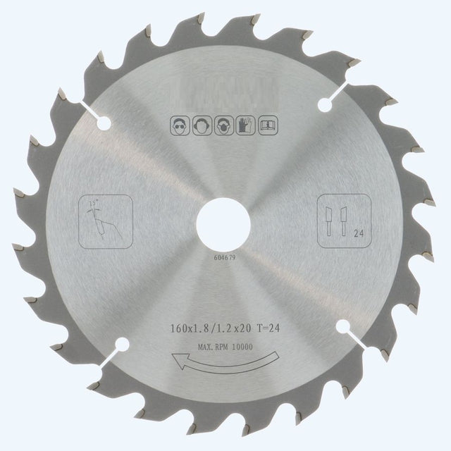 Hardmetalen zaagblad Prof 160 x 20 mm met 24 wisseltanden met dikte 1,8 mm.