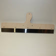 Houten rakel met vaste vertanding van gehard bladstaal.