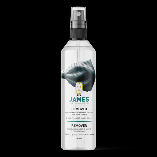 James Remover is de ideale oplossing voor het verwijderen van vlekken zoals viltstift, lijmresten, verf en nagellak, zonder risico op blijvende schade aan de vloer. In tegenstelling tot andere agressieve middelen zoals wasbenzine, terpentine, nagellakremover of stickeroplossers, laat James Remover geen doffe plekken achter.